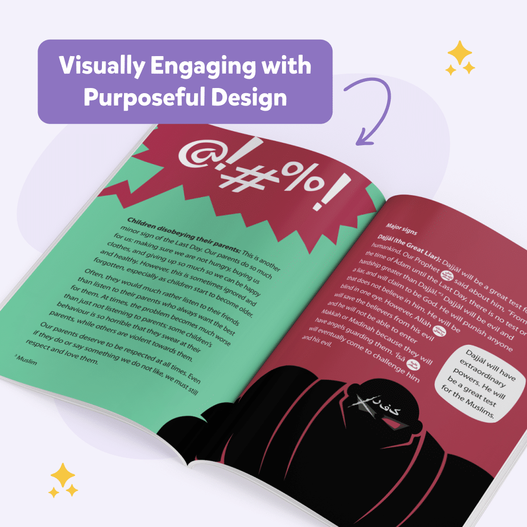 Designed with colorful illustrations and accessible explanations, the book keeps learners engaged and helps them relate Islamic knowledge to their daily lives.