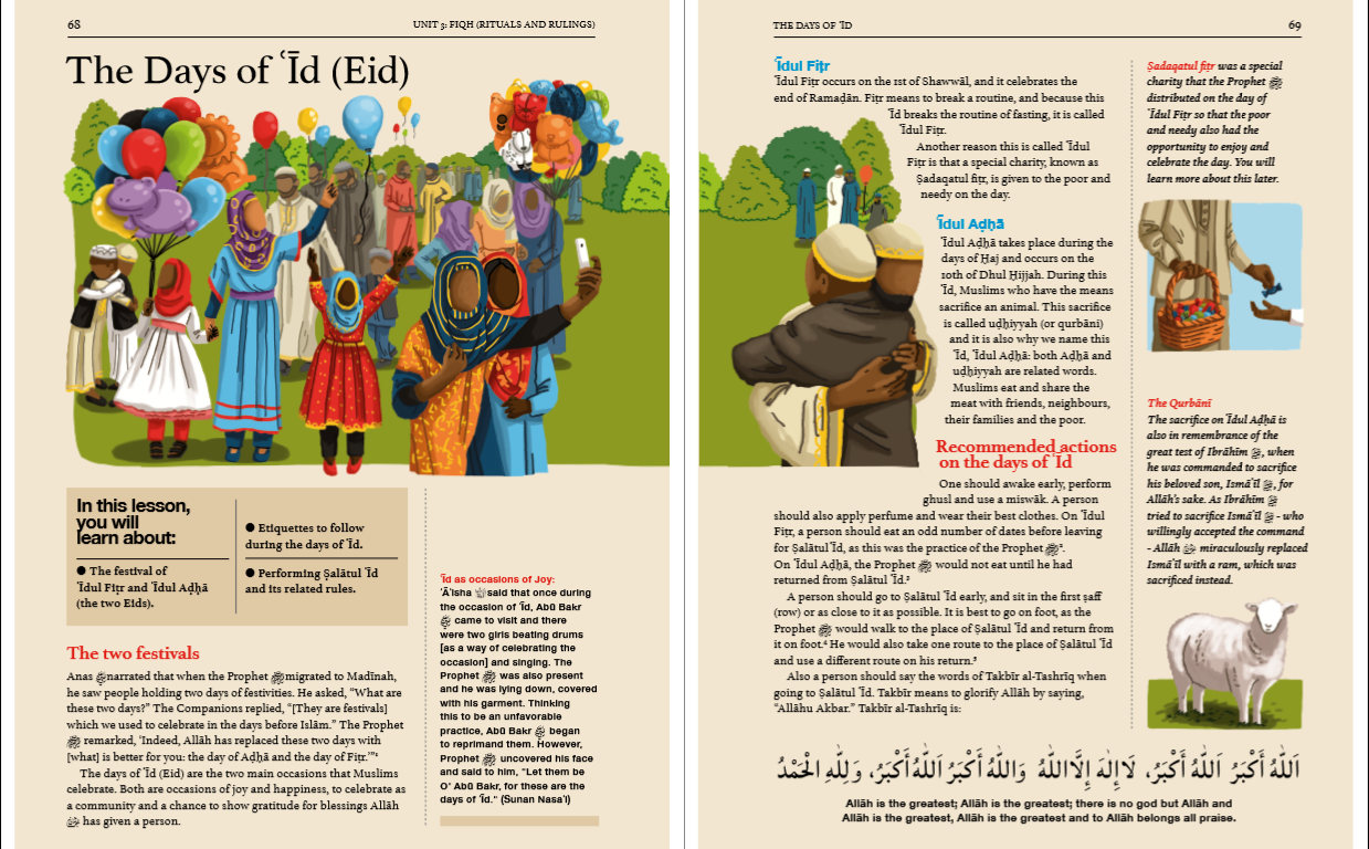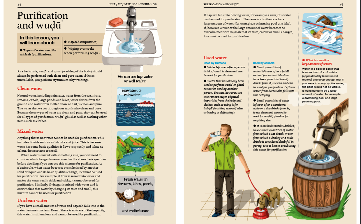 - The books showcase bespoke illustrations and infographics, making the design creative, engaging, and complementary to the Islamic content and values of the book.